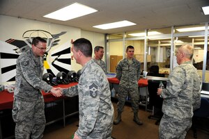 Leaders from Wisconsin's National Guard visited Kadena Air Base, Japan, March 4, 2015, to learn more about the missions here.U.S. Air Force Chief Master Sgt. Gregory Cullen, Wisconsin Air National Guard command chief, and Brig. Gen. Gary Ebben, Wisconsin National Guard assistant adjutant general,